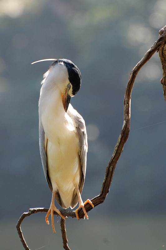 原來是湖畔樹枝上停著一隻大鳥,名叫夜鷺