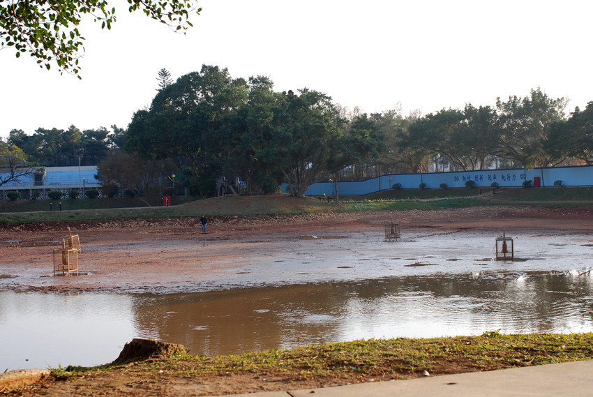 不曉得湖水抽乾跟新大樓的興建是否有關?