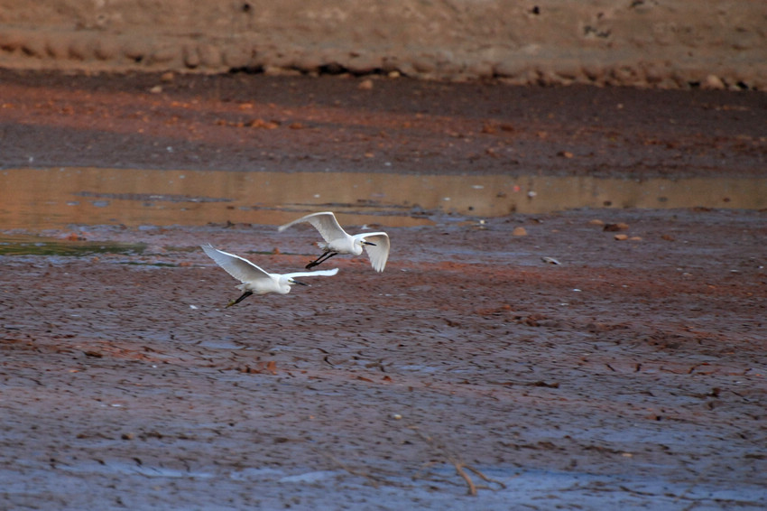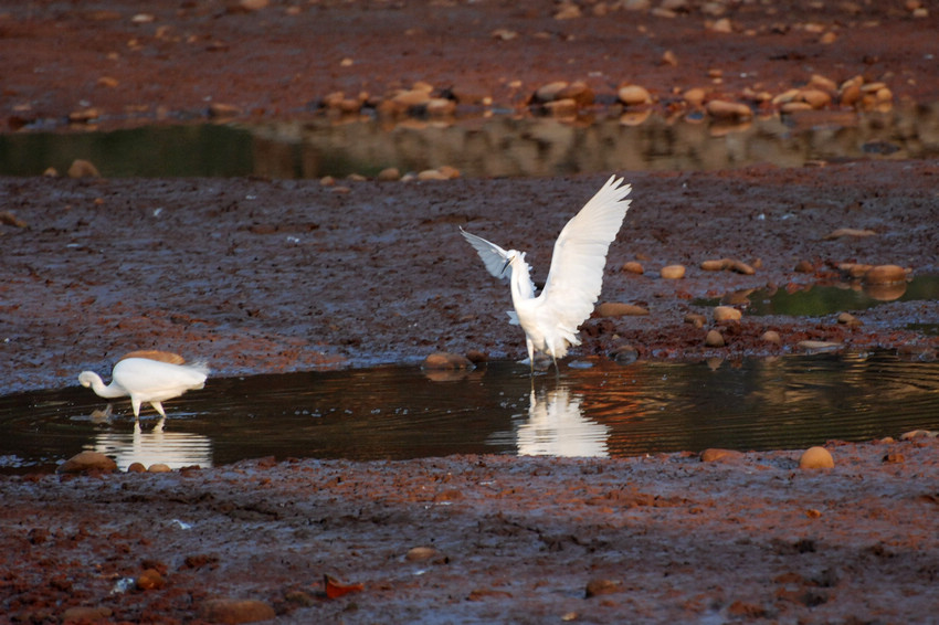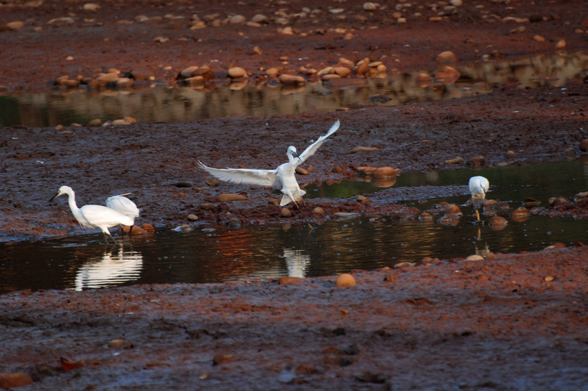 沒幾分鐘,陸續飛來了不少白鷺鷥。