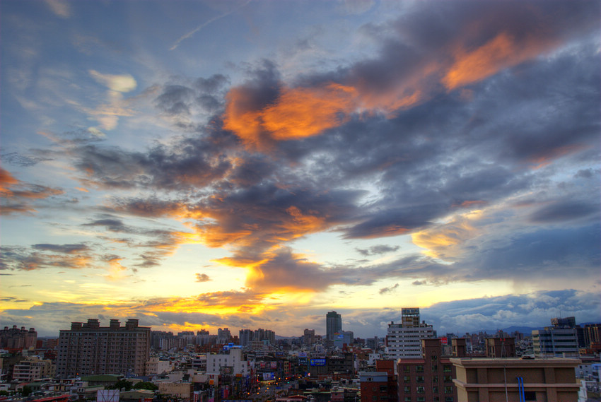 夏天的天空真的很精彩,尤其是颱風來襲前後。不過有時候不用等颱風,偶而也會有不錯的景色出現,上個月底碰巧拍到很美麗的雨後彩虹,而事隔不到一個月又拍到很美麗的清晨: