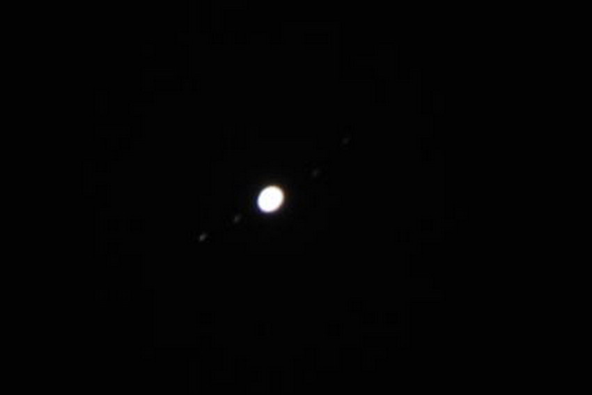 中間最亮那個是木星,右上及左下共四個光點是衛星