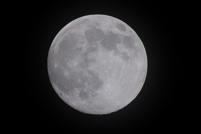月亮很亮,但太空很暗,如果沒對月亮主體做點測光,會發現拍出來的月亮是一片慘白